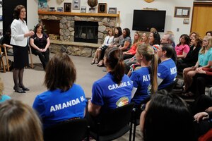 Traveling hundreds of miles, Betty Welsh accompanied her husband, Air Force Chief of Staff Gen. Mark A. Welsh III, on his visit to Mountain Home AFB, May 1-2, 2014. Throughout the two-day visit, Welsh spoke with Gunfighters on important issues such as the Sexual Assault Prevention and Response