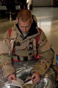 Airmen here participate in a weeklong simulated deployment environment "Sharpshooter 14-02," April 16, 2014. Realistic training equates to real-world mission success, and Airmen must be able to perform the full spectrum of their mission in full mission-oriented protective posture gear."Right now,