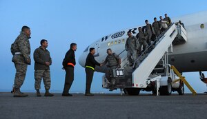 A plane load of Gunfighters returned home May 14 from their deployment in support of U.S. Pacific Command.More than 150 members from the 391st Aircraft Maintenance Unit returned here from Kunsan Air Base, Korea, as part of a rotational deployment in support of U.S. Government and Department of