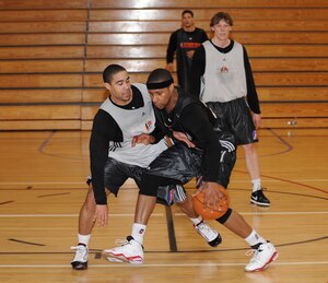 Members of the Idaho Stampede were at Mountain Home to show their support for the Gunfighters Feb 18. The team held a practice at the fitness center and toured the base during their visit. The team donated more than 100 tickets to the base in support of thier Air Power Night Feb. 19. The Idaho