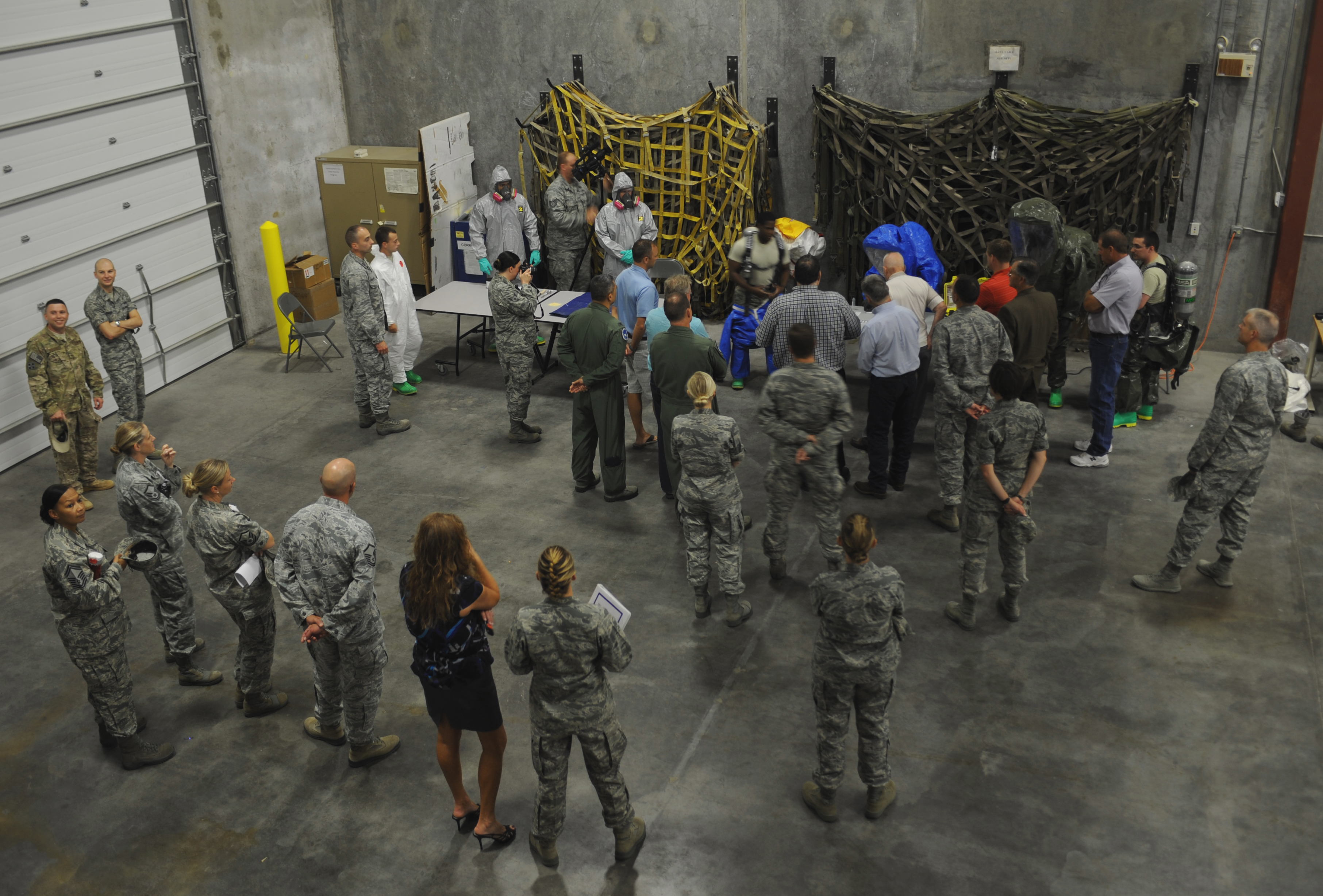 MDG hosts honorary commanders Published Aug. 15, 2013 By Senior Airman Benjamin Sutton 366th Fighter Wing Public Affairs MOUNTAIN HOME AIR FORCE BASE, Idaho -- The quiet summer day was fractured when gunfire erupted in the distance and the sounds of mortar rounds "walking" toward the building made everyone inside jump with surprise. Fortunately, the situation was just a training exercise to show local civic leaders the capabilities of medics and doctors from the 366th Medical Group. The Honorary Commander program pairs these civic leaders with squadron, group and wing leadership. The civilian commanders are given the opportunity to learn about MHAFB while the military commanders learn about the local civilian community. During the Aug. 14 tour, the civilian leaders were treated to lunch at the Gunfighter Club before being mock-deployed as the newest Gunfighter medics. "It was great to see what the medics do while deployed and at home," said Brandon Starwalt, 428th Fighter Squadron honorary commander. "There is so much work and effort that goes into getting Airmen ready to deploy and then taking care of them when they return home." As part of the mock-deployment event, Airmen posing as mock-casualties were medically evacuated as one way of showing the honorary commanders how patients are assessed and treated downrange. "Walking through the deployed facility they set up in order to treat those Airmen was my favorite part," said Starwalt. "It was amazing to be able to touch the beds they use and tents they work out of. The amount of life-saving capabilities in those smaller tents is incredible. "The facilities and equipment the medics have is almost as impressive as the medics themselves," he continued. "The process of getting injured people the help they need from the battlefield to back home is very important." Throughout the event Airmen wearing biochemical and radiation suits showed the honorary commanders just how detailed the training they receive is. "I'm definitely glad I wear a regular suit to work and not one of those crazy hazardous material suits," said Shane Zenner, 366th Fighter Wing honorary commander. "Wearing all that gear in 100 degree or more heat is extremely impressive and shows how efficient those Airmen are at what they do. "We don't get the opportunity to come out here and be involved with the base very often so when events like this happen it's a real treat," he continued. "I was impressed with how much work the Medical Group put into today's event." Master Sgt. Kevin Wallace, 366th Fighter Wing public affairs superintendent, ended the day by recounting his experience with combat medics while deployed. "Out of everything we experienced today my favorite portion was listening to Master Sgt. Wallace," said Zenner. "I appreciate that he took the time to come out here and tell his story and highlight how medics saved him. After hearing it, I certainly have a broader appreciation for what the Gunfighter medics do now." After a day full of excitement, one commander was already enthusiastic for more. "I'm extremely excited to come back for the next honorary commander event," said Starwalt. "These medics and doctors really care about ensuring Airmen are ready to go anytime."